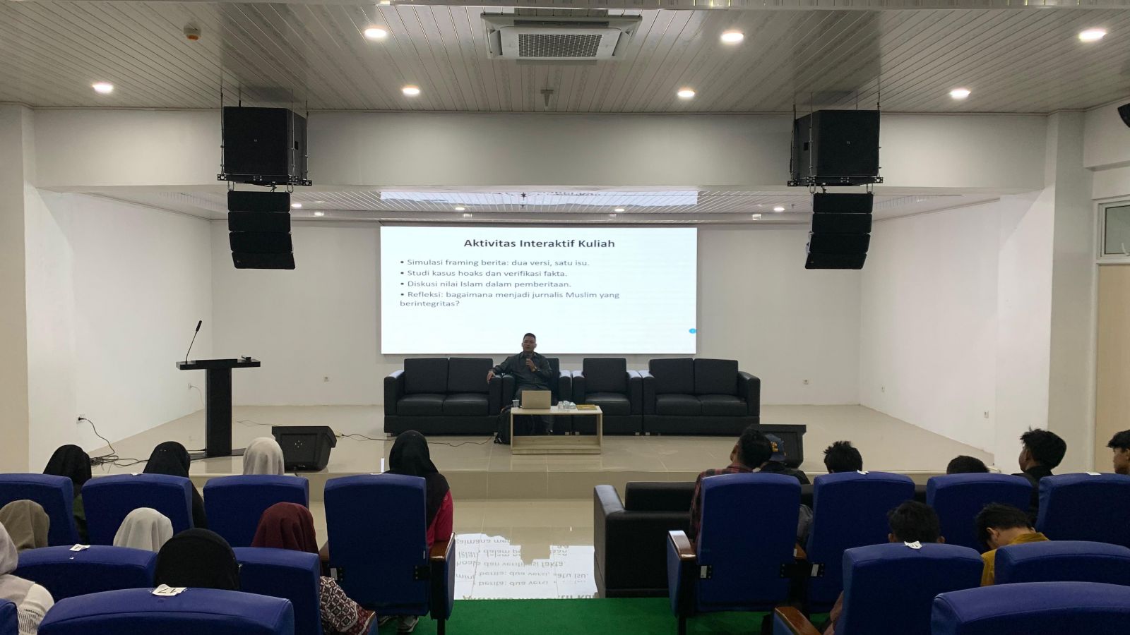 Sesi tanya jawab menjadi bagian paling dinamis dalam acara ini. Mahasiswa mengajukan berbagai pertanyaan seputar praktik jurnalisme digital, strategi menghadapi hoaks, hingga cara membangun kepercayaan audiens di media sosial. Beberapa peserta juga berbagi pandangan tentang pentingnya menghadirkan nilai-nilai Islam dalam konten jurnalistik sebagai upaya melawan arus disinformasi global. Diskusi berlangsung hangat dan interaktif, memperlihatkan semangat kritis mahasiswa dalam membaca realitas media.